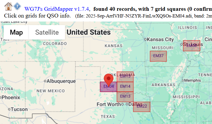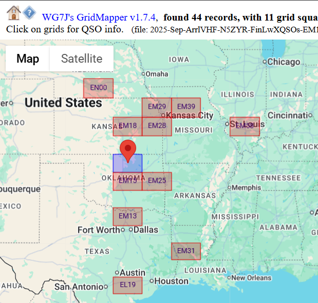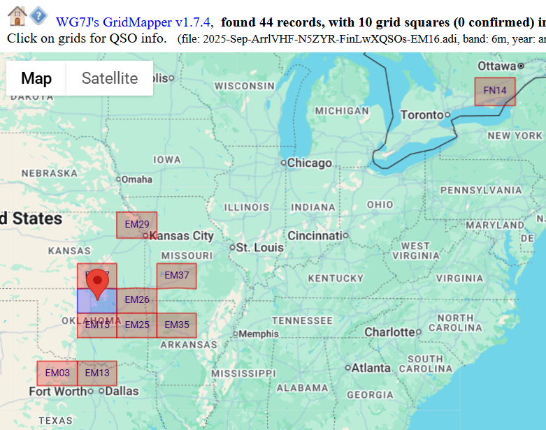 At Point 4 above we actually doing a grid dance in EM06/05/15/16. While Randy, N0LD, is driving around I will have the verticals up thus I cannot use the rotator & yagi antennas.. however my verticals are amazing however we are on flat land at 1,042 ft elevation since it’s toward Western Oklahoma (up-hill all the way) so I don’t know what our range may be.