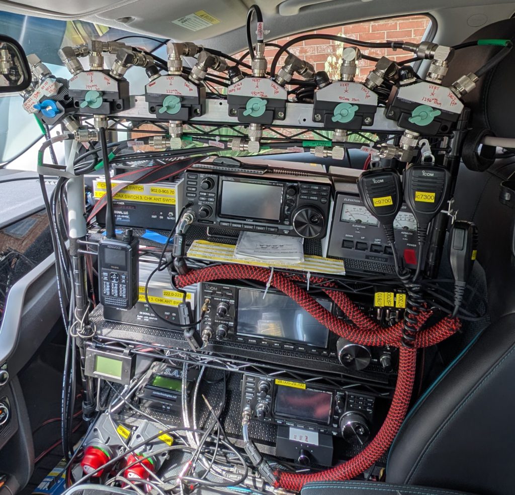 One change I made for this trip was adding another antenna switch and a little re-arrange of connections. Yes, it’s a mess. Yes I can see the sideview mirror.