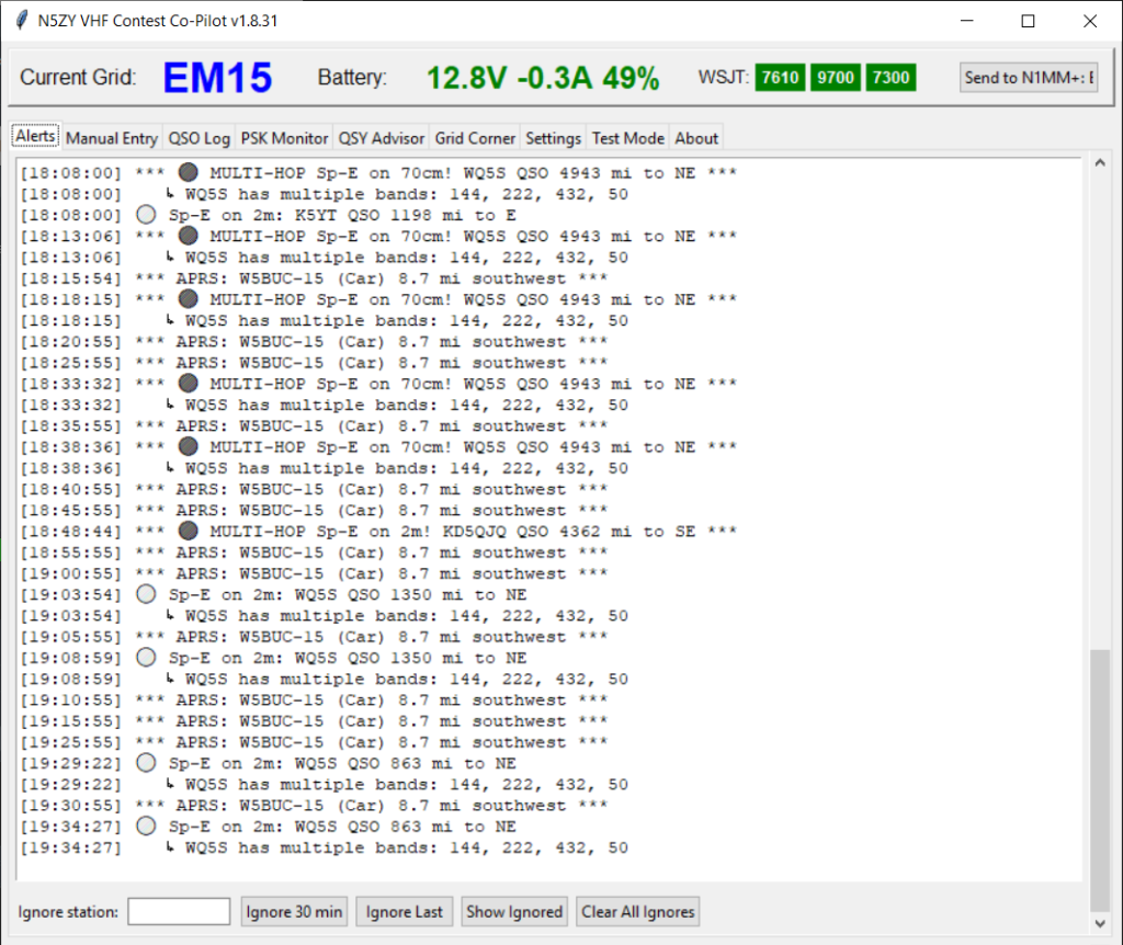 After years of juggling multiple WSJT-X instances, manual grid updates, and the constant fear of losing QSOs to UDP packet drops during VHF contests, I finally built the tool I always wanted. The N5ZY Co-Pilot is a Python application designed specifically for VHF/UHF rover operations, automating the tedious stuff so you can focus on making contacts.