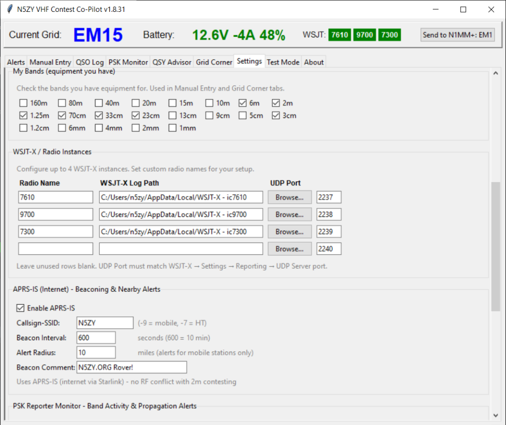 - Manual grid updates – Every boundary crossing means updating N1MM+, all three WSJT-X instances, and hoping you don’t fat-finger it after 10 hours of contesting