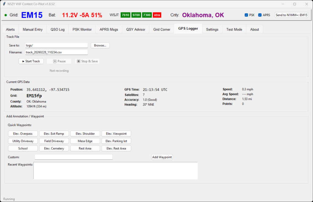The N5ZY Co-Pilot runs on my rover laptop and handles all of this automatically.