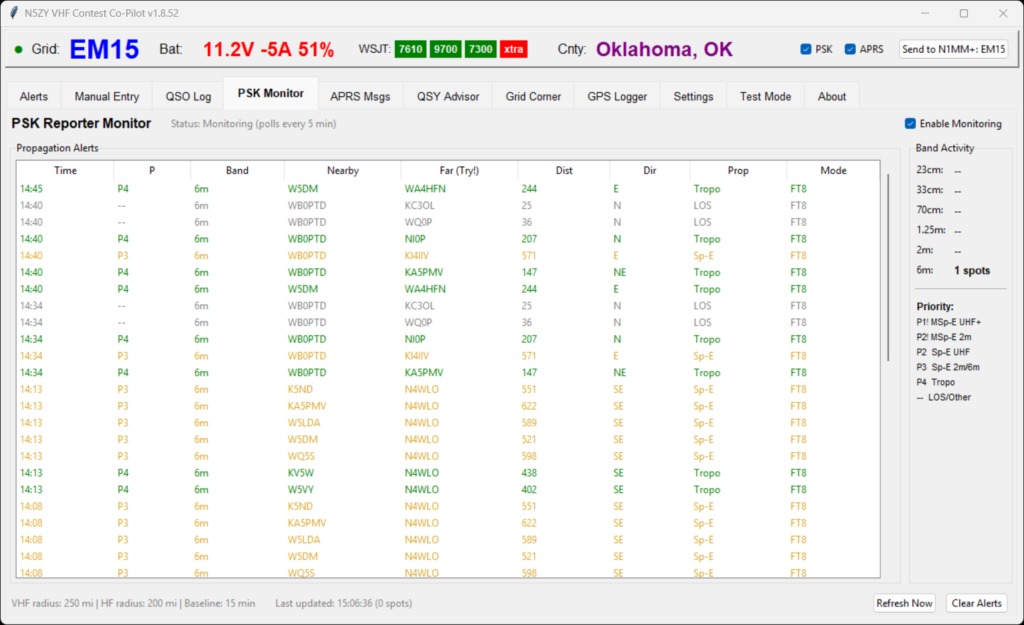 PSK Reporter Integration Monitors PSK Reporter every 5 minutes for: