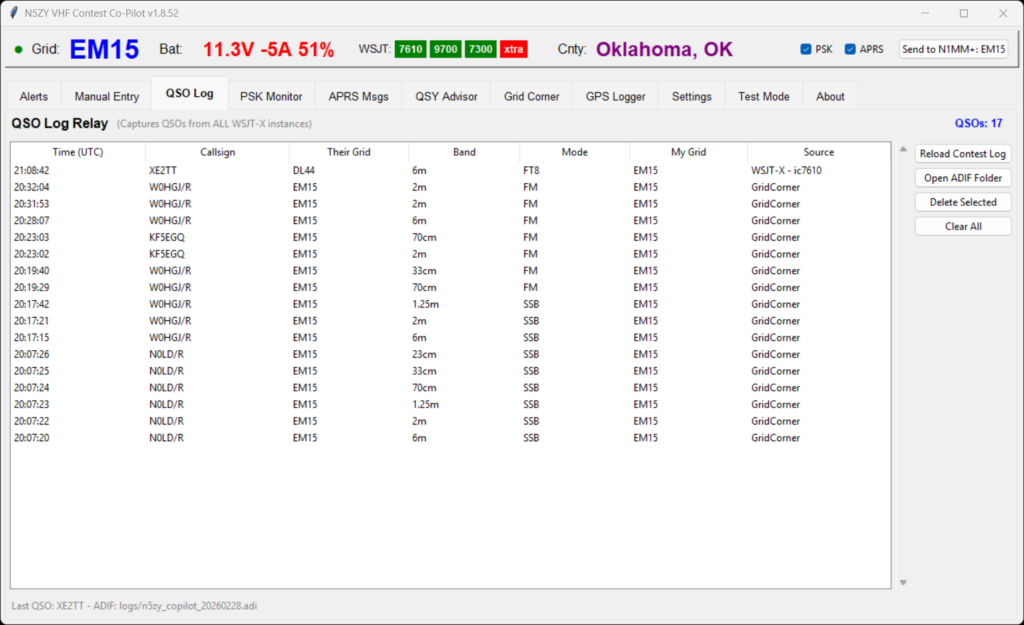 - Manual grid updates – Every boundary crossing means updating N1MM+, all three WSJT-X instances, and hoping I didn’t fat-finger it after 10 hours of contesting or after a distraction